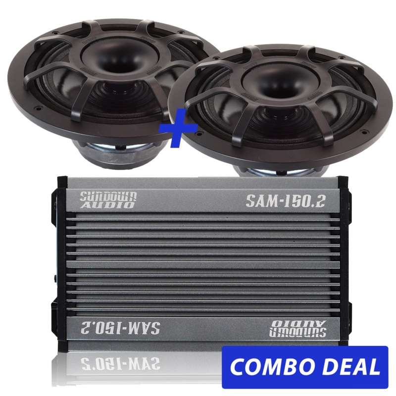 COMBO DEAL INCLUDES:2 x BPS-8 8" Pro Sound Co-Axial Speakers1 x SAM-150.2 Amplifier-----------------------BPS-8 8" Pro Sound Co-Axial Speaker Information:Frequency Range 100hz - 18khz4 Ohm150w RMS94dB Sensitivity [1W/1M]Cutout Diameter: 7.32"Mounting Depth